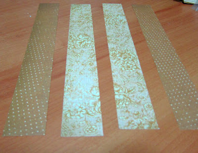 Corte 4 tiras no tamanho 30×4 cm dos mesmos papéis que usou para decorar a tampa.