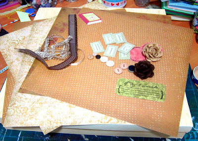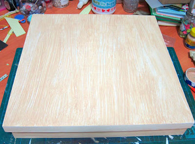 Antes de começar a decoração pintei toda a caixa com tinta acrílica branca (2 vezes) e depois pintou a caixa de bege e deu acabamento de pátina.