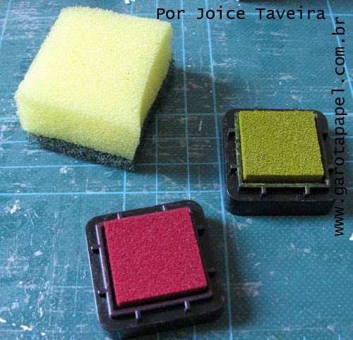 9.Use carimbeira para passar nas partes brancas ( utilize o vermelho e verde e um pedaço de esponja para ajudar).